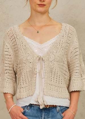 MABE-Margo Crochet Cropped Cardigan Ecru