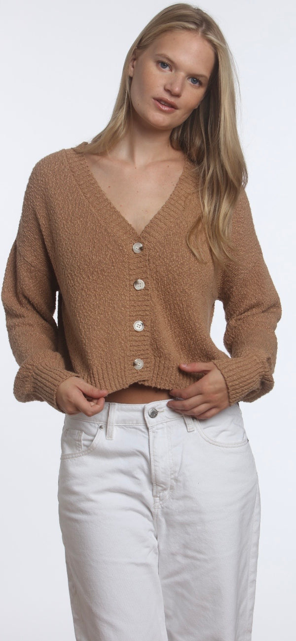 HASSON-Plaited Shaker V Neck Cardigan Tobacco/ Vanilla